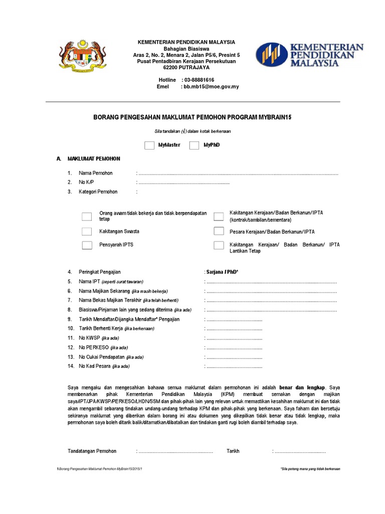 Borang Pengesahan Maklumat Pemohon New Pdf Pdf